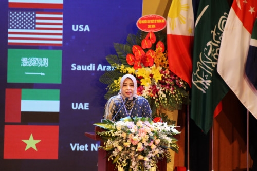 Bà Elvira, Chủ tịch Ủy ban điều hành quốc tế IMSO phát biểu khai mạc kì thi. |