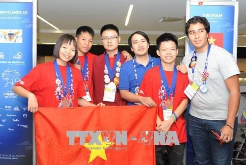 Học sinh Việt Nam giành Huy chương Đồng về thiết kế robot. Ảnh: TTXVN