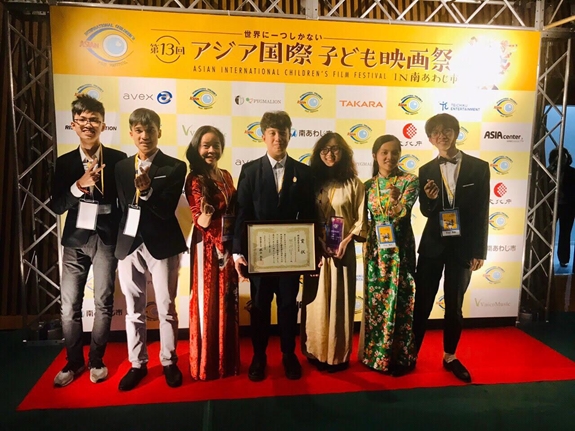 Đoàn làm phim Việt Nam nhận giải. Ảnh do Sở GD&ĐT Hà Nội cung cấp. |