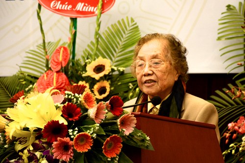 Nguyên Phó chủ tịch nước, Bộ trưởng Bộ GD-ĐT Nguyễn Thị Bình phát biểu tại hội thảo.