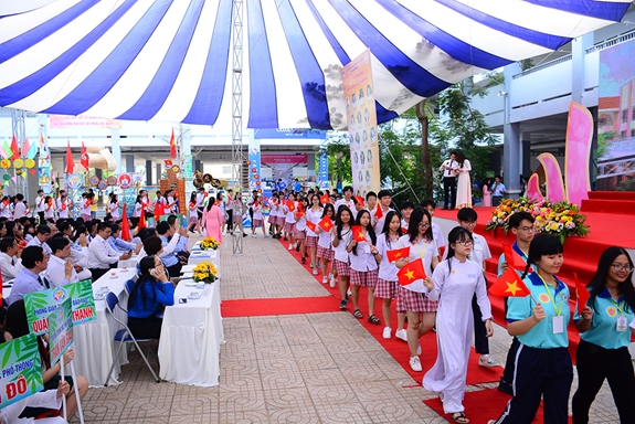 Các đoàn học sinh diễu hành tham gia hội trại. |