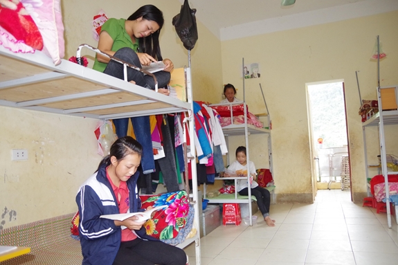 Học sinh Trường PTDTBT THCS Tri Lễ ôn bài trong khu ký túc xá nhà trường. |