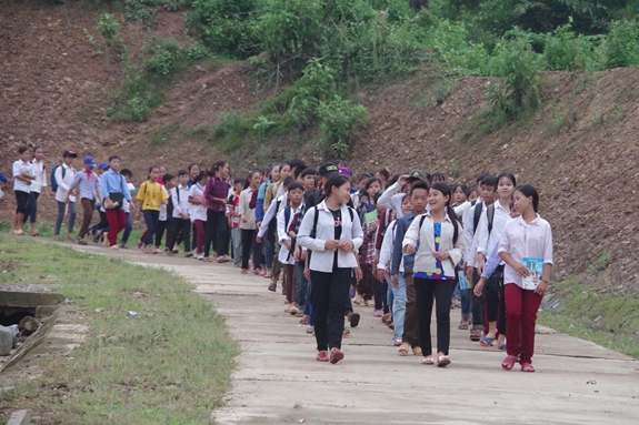 Học sinh Trường PTDTBT THCS Mai Sơn náo nức trở lại trường. |