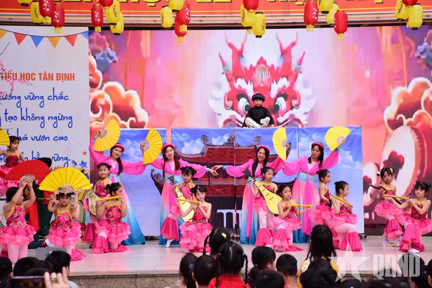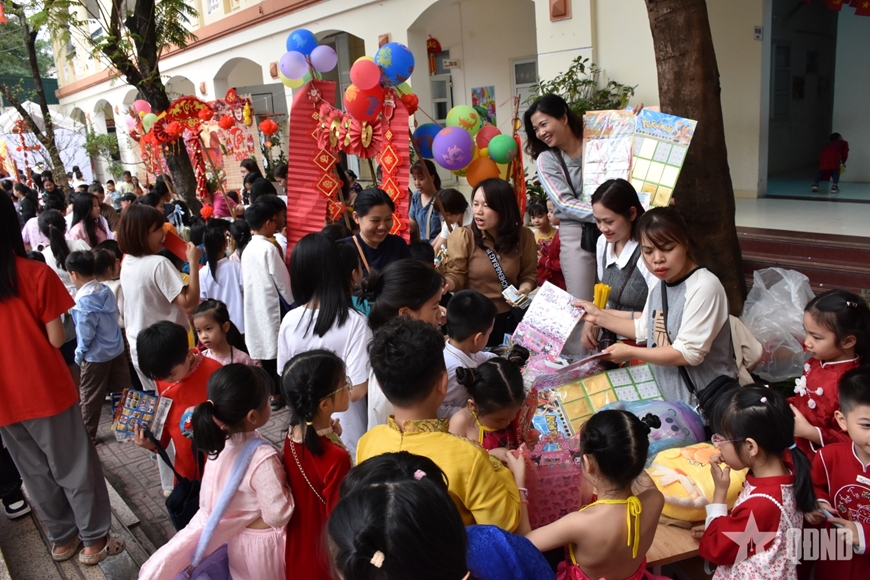 Học sinh hào hứng tham gia Hội chợ "Xuân yêu thương" năm 2026 của Trường Tiểu học Tân Định.