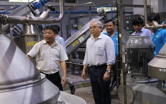 Đoàn công tác Bộ KH&CN kiểm tra dây chuyền VCO tại Công ty TNHH Chế biến dừa Lương Quới.