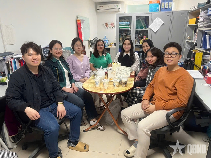 | Lê Trần Thanh Hà (thứ năm, từ trái sang) cùng với cán bộ, nhân viên ở Viện Hàn lâm Khoa học và Công nghệ Việt Nam. |