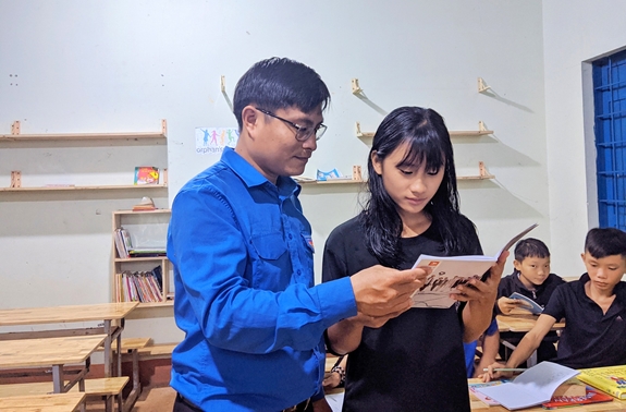 Thầy giáo Mai Văn Chuyền hướng dẫn học sinh ôn tập. |