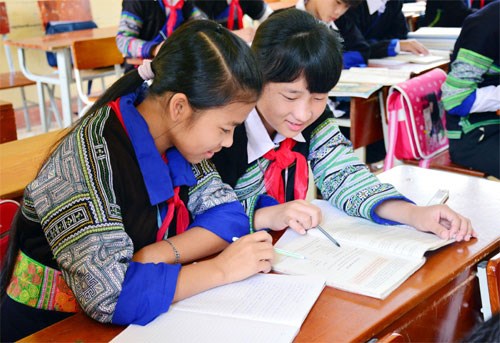 Đầu năm học mới, các em học sinh Trường Phổ thông Dân tộc nội trú-THCS Mù Cang Chải, tỉnh Yên Bái đã trở lại trường sau những ngày nghỉ hè bên gia đình.