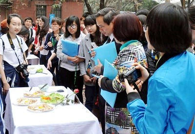 Sinh viên Trường ĐH KHXH&NV (ĐHQGHN) tham gia cuộc thi nấu ăn chủ đề “Hương tháng 3”.