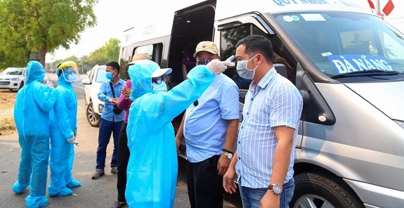 Sinh viên tình nguyện trực tại các chốt kiểm dịch của TP Đà Nẵng. Ảnh: Trường Đại học Sư phạm-Đại học Đà Nẵng. |