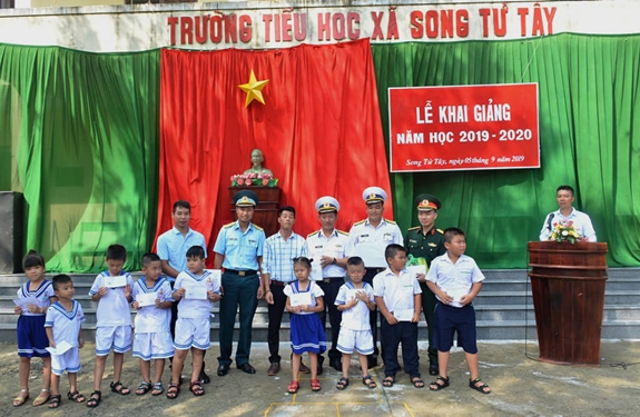 Ông Đậu Đình Dân, Chủ tịch UBND xã Song Tử Tây cho biết, không những quan tâm giúp đỡ công tác chuẩn bị cho lễ khai giảng năm học mới, trong những năm qua, cấp ủy, chính quyền địa phương, các cán bộ, chiến sĩ đóng quân trên đảo Song Tử Tây còn không ngừng tạo điều kiện mọi mặt cả về vật chất và tinh thần để thầy và trò Trường Tiểu học xã Song Tử Tây thực hiện tốt việc dạy và học. “Ngoài ra, để góp phần nâng cao chất lượng dạy và học, chúng tôi cũng sắp xếp để những cán bộ, chiến sĩ có trình độ tiếng Anh tốt kèm cặp, cải thiện khả năng ngoại ngữ cho các em học sinh”, ông Đậu Đình Dân chia sẻ thêm.