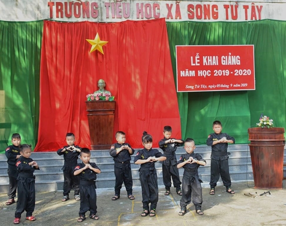 Một tiết mục văn nghệ của các học sinh Trường Tiểu học xã Song Tử Tây tại lễ khai giảng năm học mới.