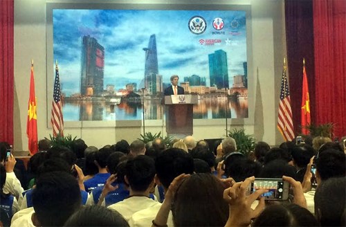 Ngoại trưởng Hoa Kỳ Ke-ri nói chuyện với sinh viên Việt Nam