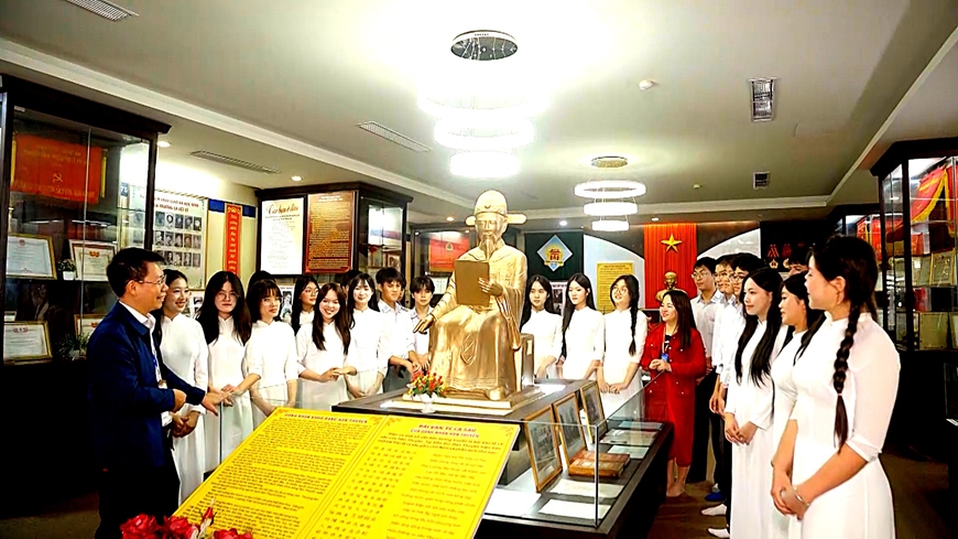 | Học sinh Trường THPT Hàn Thuyên tìm hiểu truyền thống nhà trường. Ảnh: QUANG THUẬN |