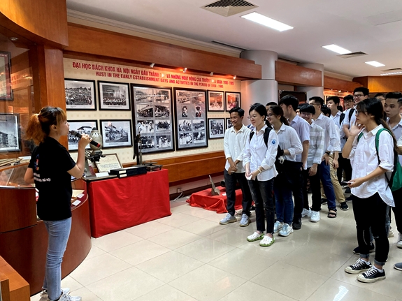 | Sinh viên Trường Đại học Bách khoa Hà Nội tìm hiểu về lịch sử cách mạng tại nhà truyền thống của trường. |
