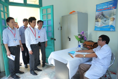 Các thành viên đoàn công tác kiểm tra phòng y tế tại điểm thi Trường THPT B Thanh Liêm. |