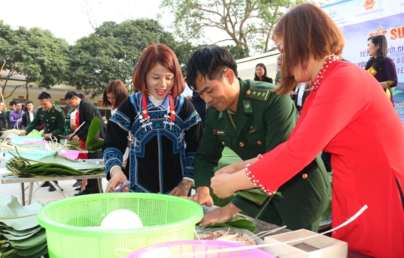 Hoạt động thi gói bánh chưng trong chương trình “Tết sum vầy” diễn ra tại xã Trịnh Tường, huyện Bát Xát, tỉnh Lào Cai. |