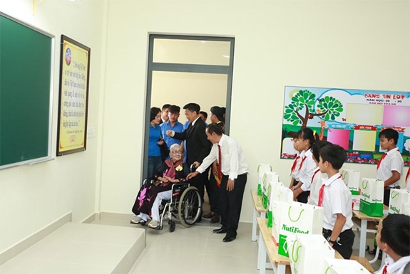 Nghi thức cắt băng khánh thành ngôi trường mới.