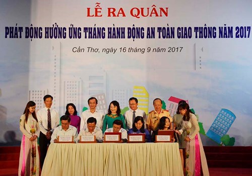 Tại lễ phát động, đại diện các sở Giáo dục và Đào tạo đã ký kết giao ước thi đua hưởng ứng Tháng hành động ATGT năm 2017.
