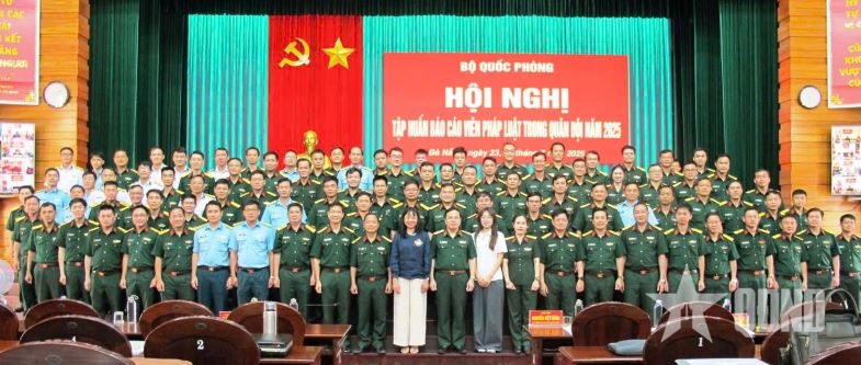 | Các đại biểu dự lớp tập huấn báo cáo viên pháp luật trong Quân đội năm 2025. |