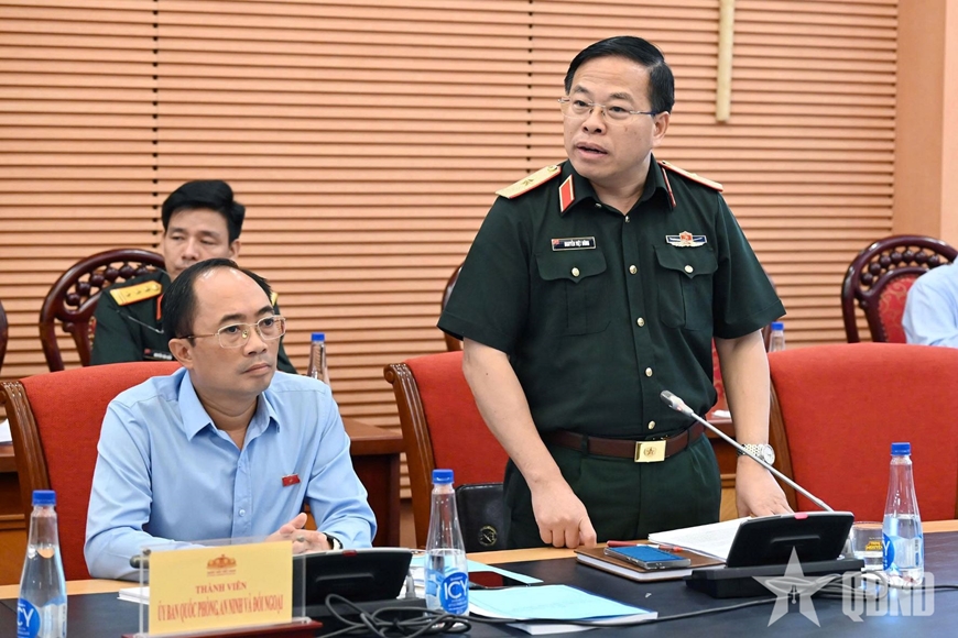 | Thiếu tướng Nguyễn Việt Dũng, Cục trưởng Cục Pháp chế, Bộ Quốc phòng phát biểu tại Phiên họp mở rộng của Thường trực Ủy ban Quốc phòng, An ninh và Đối ngoại tổ chức. Ảnh: THU HOÀNG |