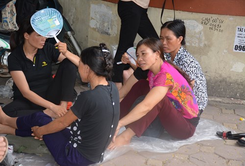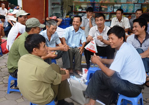 Trải nilon trên vỉa hè, "buôn dưa lê" có lẽ là cách hữu hiệu nhất khi chờ con bên ngoài phòng thi của các bậc phụ huynh.