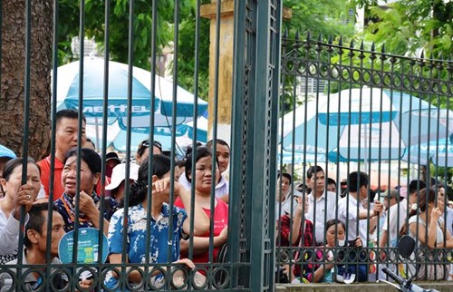 Hàng trăm con mắt dõi theo con em mình bên ngoài phòng thi. Đây là hình ảnh quen thuộc tại hầu hết các điểm thi.