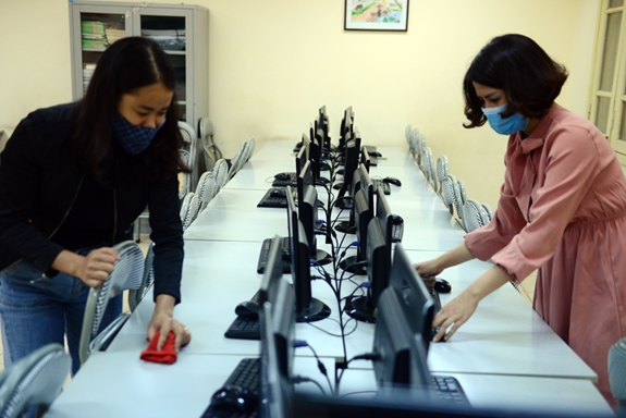 | Toàn bộ máy tính trong phòng học chức năng được lau bằng dung dịch sát khuẩn. |