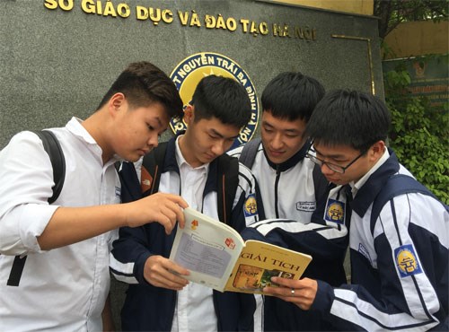 Quy chế xét tuyển ĐH, CĐ 2017 không hạn chế về nguyện vọng đăng ký trường hay ngành, tạo nhiều cơ hội cho thí sinh bước chân vào đại học. Trong ảnh: Học sinh Trường THPT Nguyễn Trãi (Hà Nội) ôn bài trước giờ vào lớp. Ảnh: NGUYỄN HOÀI
