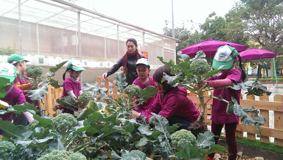 Học sinh Trường Mầm non Mai Dịch (Hà Nội) tham gia hoạt động trải nghiệm tại trường. |