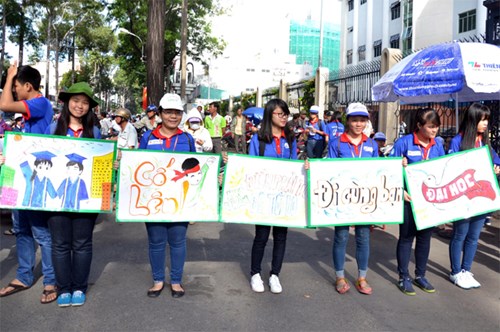 Các tình nguyện viên tiếp sức mùa thi tại cụm thi TP Hồ Chí Minh. Ảnh: Hùng Khoa