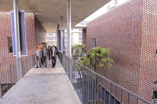| Các đại biểu tham quan khuôn viên giảng đường. |