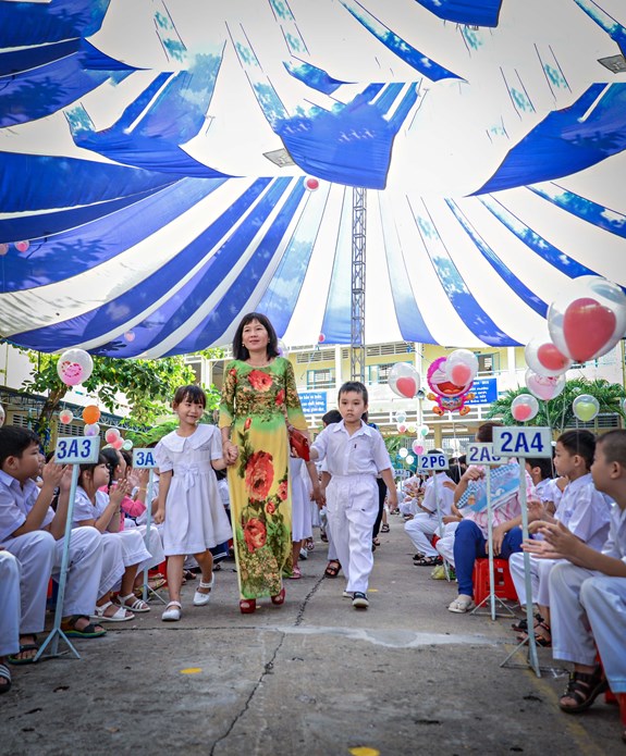 Trường tiểu học Trần Quốc Toản (quận Ninh Kiều, TP Cần Thơ) tổ chức nghi thức đón học sinh vào năm học mới. |