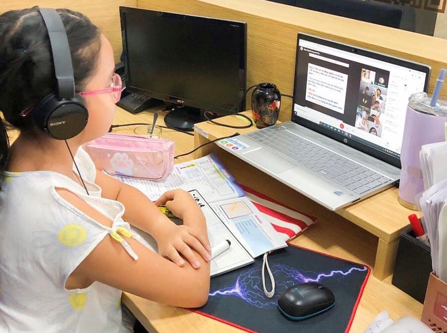 Một học sinh ở TP Hà Nội đang học online. Ảnh: HUYỀN NGỌC.