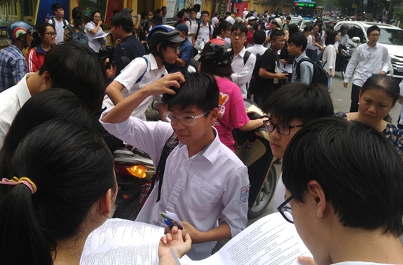 Khác với chiều qua, khi nhiều thí sinh buồn bã rời phòng thi do đề Toán được cho là khó, hôm nay các em ra về với tâm trạng thoải mái, cộng với tiết trời Hà Nội mát mẻ, dễ chịu. Đây cũng là một yếu tố thuận lợi giúp thí sinh bớt mệt mỏi khi vượt qua kỳ thi căng thẳng.