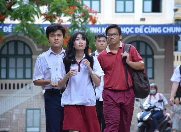* Tại TP Hồ Chí Minh: Các thí sinh tại cụm thi TP Hồ Chí Minh đã hoàn thành bài thi tổ hợp Khoa học tự nhiên (KHTN) các môn Vật lý, Hóa học và Sinh học.