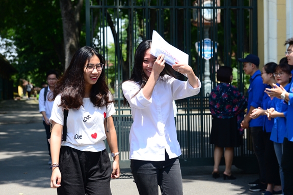 Phần lớn các em đều phấn khởi sau khi hoàn thành bài thi ở tổ hợp Khoa học tự nhiên. |