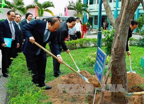 Thủ tướng Nguyễn Xuân Phúc trồng cây lưu niệm tại Đại học Đà Nẵng. Ảnh: Thống Nhất – TTXVN