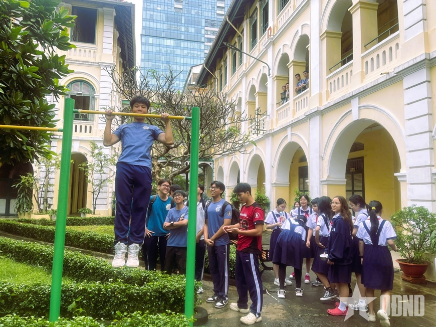 Học sinh Trường THCS và THPT Trần Đại Nghĩa (phường Sài Gòn, TP Hồ Chí Minh) rèn luyện thể lực trong giờ ra chơi.