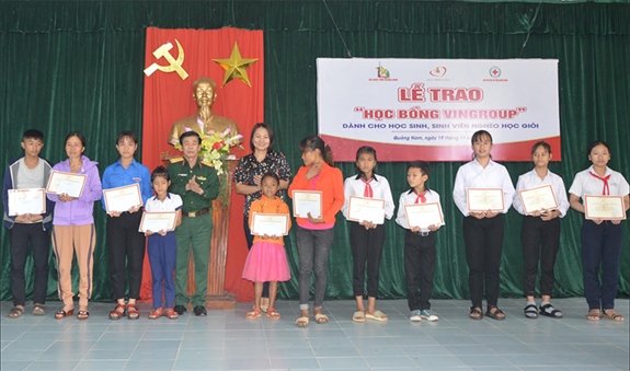 Sáng 19-11, Bộ CHQS tỉnh Quảng Nam phối hợp với Quỹ Thiện tâm (Tập đoàn Vingroup) và Hội Chữ thập đỏ tỉnh Quảng Nam tổ chức Lễ trao “Học bổng Vingroup” cho học sinh, sinh viên có hoàn cảnh khó khăn học giỏi, năm học 2019-2020 trên địa bàn tỉnh.