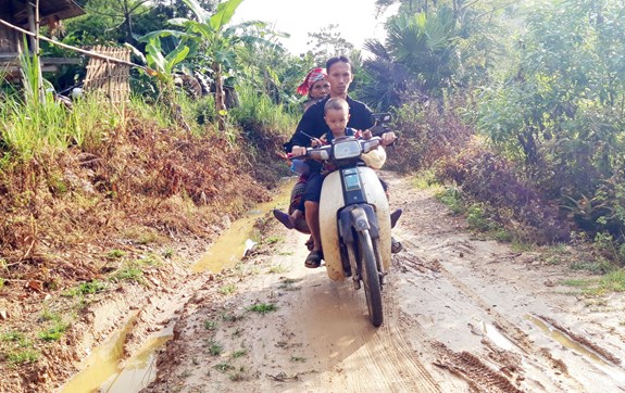 Từ sáng sớm, phụ huynh đã vượt qua chặng đường lầy lội để đưa con đến điểm trường, kịp giờ khánh thành.