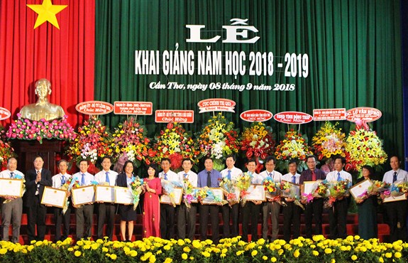 Hiệu trưởng Trường Đại học Cần Thơ trao bằng khen cho 21 tập thể có thành tích xuất sắc trong công tác giáo dục năm học 2017-2018.