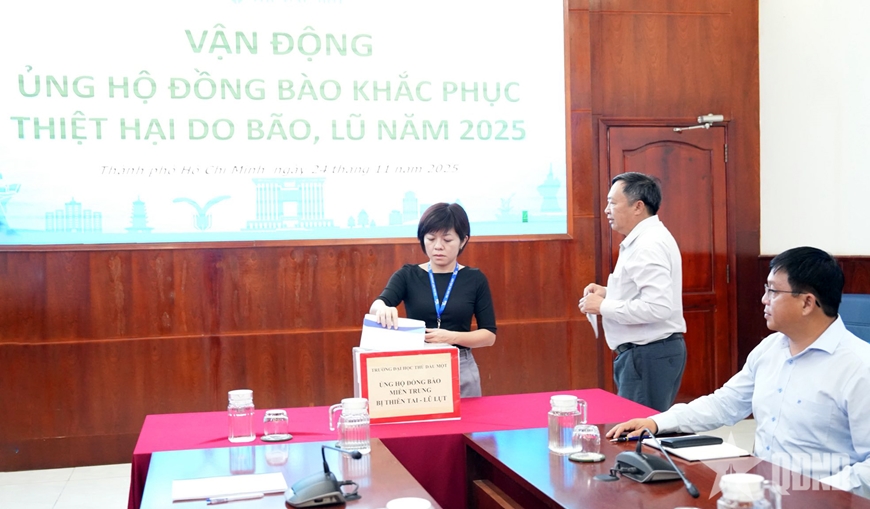 | Trường Đại học Thủ Dầu Một quyên góp ủng hộ người dân vùng lũ. |