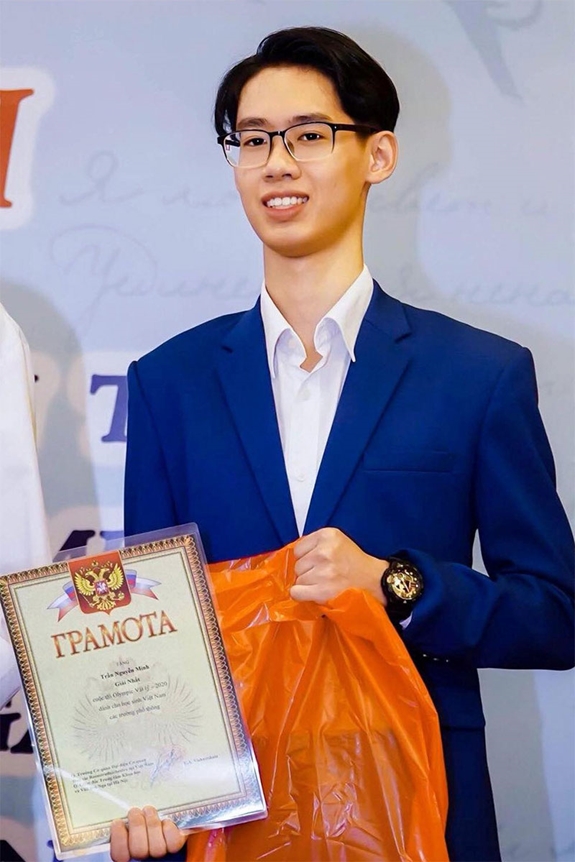 Trần Nguyễn Minh nhận giải nhất Cuộc thi Olympic Vật lý năm 2020. (Ảnh nhân vật cung cấp). |