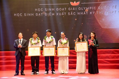 19 em học sinh đoạt huy chương Bạc huy chương Đồng và Bằng khen trong các kỳ thi Olympic quốc tế, khu vực; 8 học sinh đoạt giải Ba cuộc thi Intel Isef năm 2016 và 5 thủ khoa xuất sắc nhất của Kỳ thi THPT quốc gia năm 2016 đã được Bộ trưởng Bộ GD-ĐT tạo xét tặng bằng khen. Ngoài ra, Bộ GD-ĐT còn tặng bằng khen cho 14 thầy cô giáo có thành tích trong công tác tập huấn và hướng dẫn các đội tuyển quốc gia dự thi Olympic quốc tế và khu vực năm 2016.