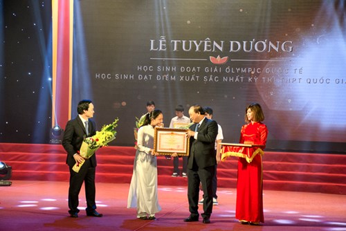 Tại buổi lễ, Thủ tướng Nguyễn Xuân Phúc trân trọng chúc mừng những thành tích to lớn của các học sinh đạt thành tích quốc tế, các học sinh xuất sắc của Kỳ thi THPT quốc gia cùng các thầy cô giáo, cha mẹ học sinh sau một chặng đường gian nan của việc học tập, giảng dạy. Thủ tướng nhấn mạnh, đằng sau những tấm huy chương lấp lánh, của những thành tích xuất sắc, những bằng khen là biết bao công lao khó nhọc, những hy sinh thầm lặng của các bậc làm cha mẹ, ông bà và sự dày công vun đắp của các thầy cô giáo.
