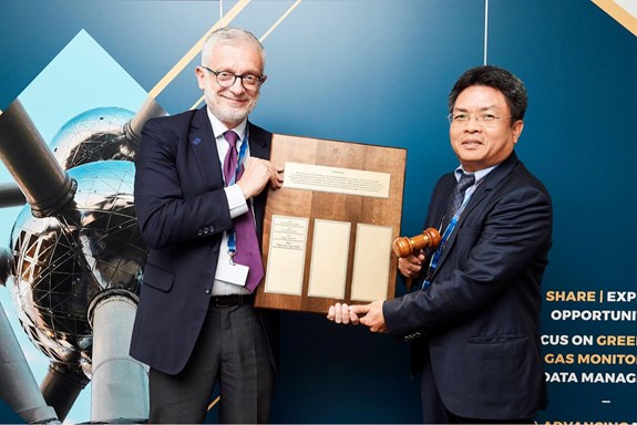 PGS.TS Phạm Anh Tuấn (phải) thay mặt Việt Nam nhận nhiệm vụ Chủ tịch CEOS. |
