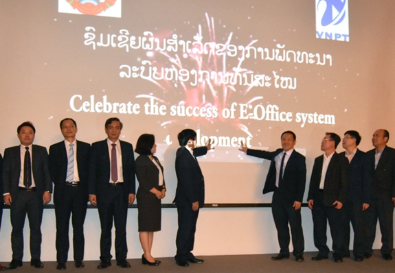Từ tháng 4-2017, Tập đoàn VNPT và Bộ BCVT&TT Lào đã ký biên bản ghi nhớ về hợp tác cung cấp dịch vụ Chính phủ điện tử tại thủ đô Viêng-Chăn. Từ tháng 9-2017, giải pháp E-Office đã bắt đầu được triển khai tại các đơn vị của Bộ BCVT&TT. Hiện E-Office đã được sử dụng ở tất cả các đơn vị cấp vụ và tương đương của Bộ BCVT&TT Lào và đã có trên 3.000 văn bản được đưa vào hệ thống. Qua sử dụng cho thấy việc quản lý văn bản đến-đi của các đơn vị cấp vụ và tương đương thành hệ thống và hiện đại hơn, có thể theo dõi việc nhận-chuyển văn bản và có thể báo cáo văn bản đến-đi một cách thường xuyên thông qua hệ thống điện thoại di động. Ngoài ra, việc sử dụng E-Office còn giúp nâng cao trình độ sử dụng công nghệ thông tin của cán bộ công chức.