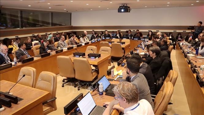 | Đại sứ, Trưởng Phái đoàn Việt Nam tại LHQ Đỗ Hùng Việt chủ trì tọa đàm. |