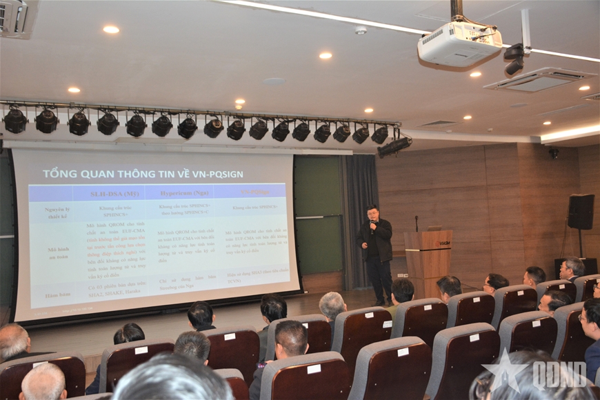 Tại hội thảo, một trong những nội dung trọng tâm thu hút sự chú ý của giới khoa học là phần trình bày của nhóm nghiên cứu thuộc Viện Khoa học - Công nghệ mật mã, Ban Cơ yếu Chính phủ.